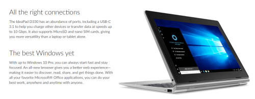 2 x USB 2.0 (on dock, non-functional in tent mode)