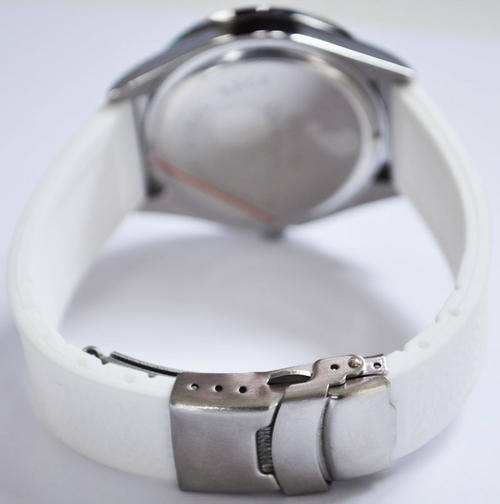 Tomato watches are known for their trendsetting style and affordable prices. This glitzy and glamorous watch is perfect for a lady who likes to make a statement. The crystal embellished dial is pretty and fun, the white rubber strap is durable and comfortable. Perfect for any outfit on any occasion.