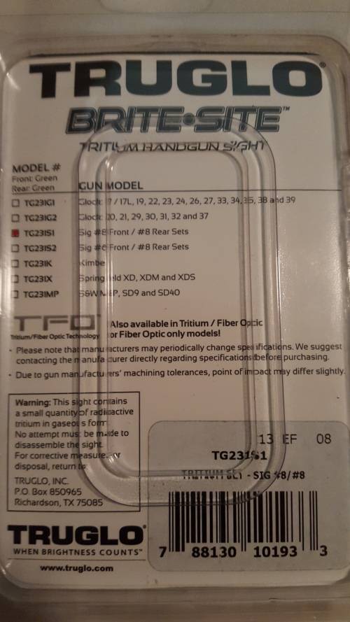 Up for grabs is a brand new set of Tru Glo Tritium sights for Sig Sauer.