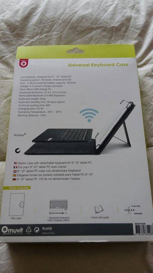 Self standing flip case with detachhable keyboard and straps adjust to fit your tablet. Compatible 9 - 10 inch