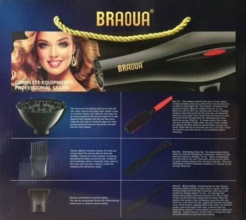 Braoua 4000 Watts 6 in1 Hair Dryer BR-8860 Have here a new, unused in OVP a Braoua professional hair dryer Compact, with 4000 watt black 6in1 BR-8860. This hair dryer has a particularly powerful motor.