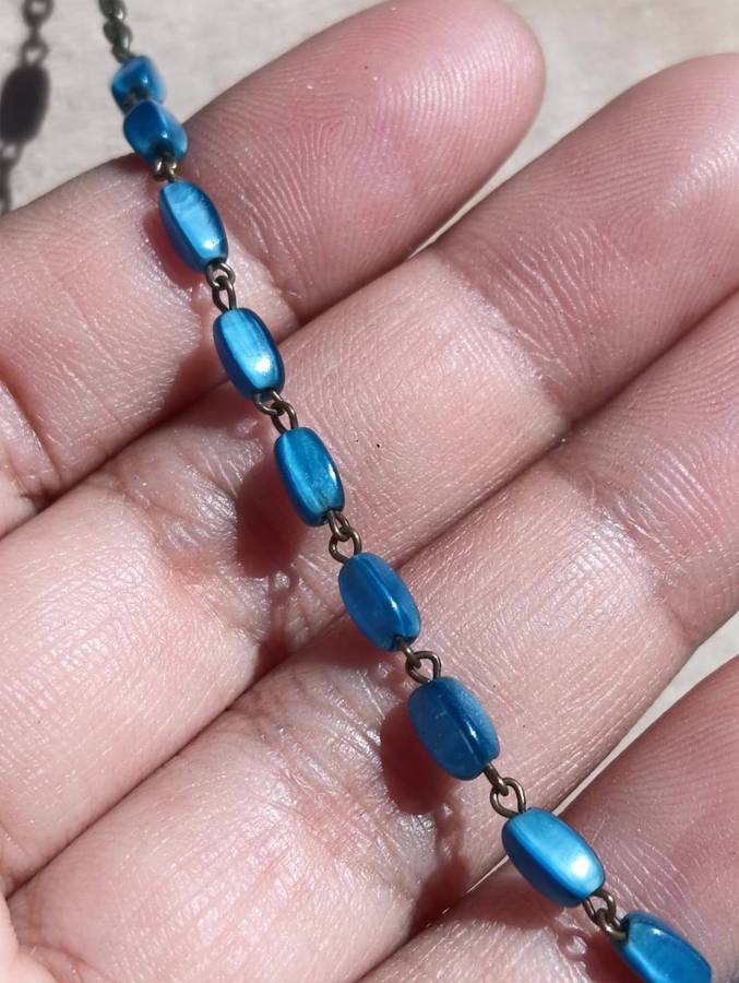Brass and Blue Gemstone Beaded Rosary Necklace Vintage Mid 20th Century