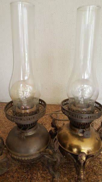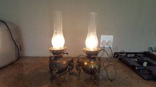Brass antique lamp lights, has dragons on the sides. Old brass lights turned into bedroom decor lights. Needs a polish.