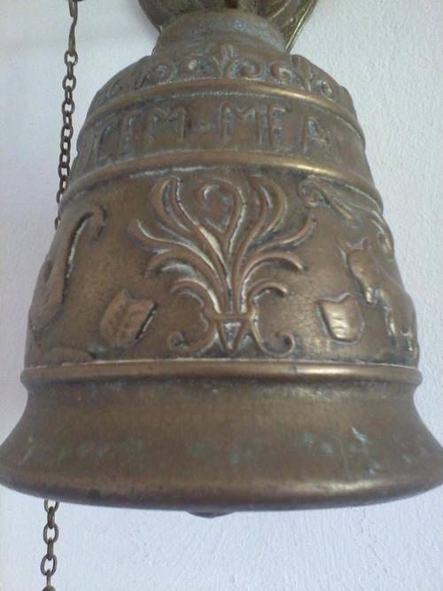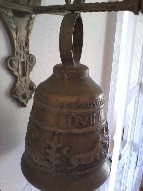 Beautiful Solid Brass Vintage Monastery Bell with angel. Used to wake Monks to know when it was time for prayer. It has the latin inscription Vocem Meam A Ovime Tangit which means 'whoever touches me will hear my voice. Has been used in the past as a door bell. Size 32 cm plus pull chain x 18cm wide. All intact and working and in good condition for the age. Almost 2kgs in weight.