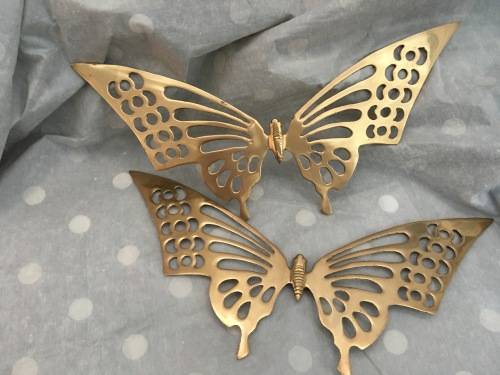 Stunning pair of large brass butterflies measuring approx 36cm across the wingspan & 17.5 cm in height