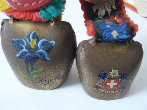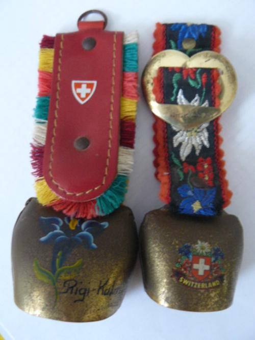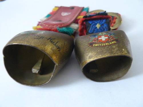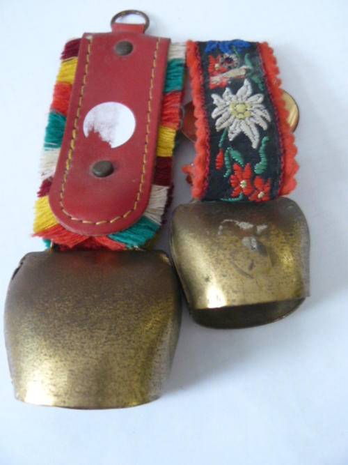 COLLECTABLE COW BELS X 2 BRASS AND MATERIAL