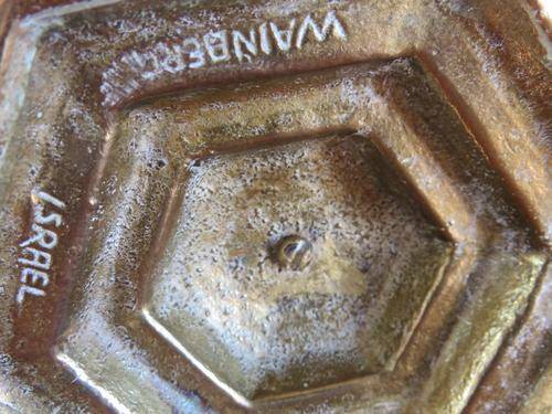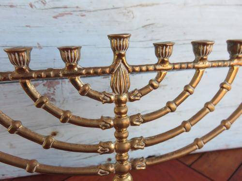 SOLID BRASS MENORAH    MADE IN ISRAEL     HEIGHT   22 CM 25 CM HIGH     SHIPPING    R  60
