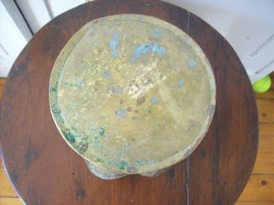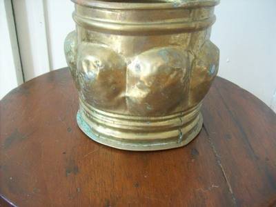 Brass plant holder, the pot has some dents in it but this does not detract from the item. in fact it adds character, it measures  140mm high dia 155mm.