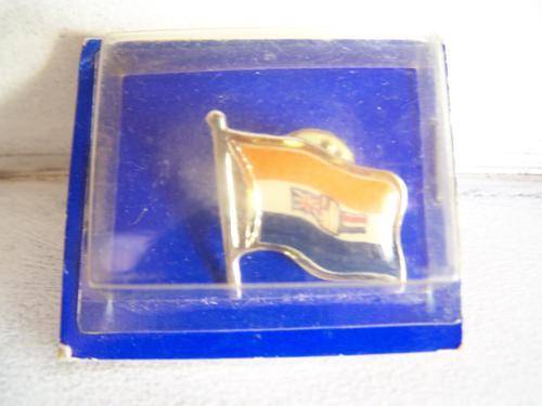 Brass Plate "Die Wonder Van Afrikaans" 1959 plus a Old SA Flag Pin Brooch