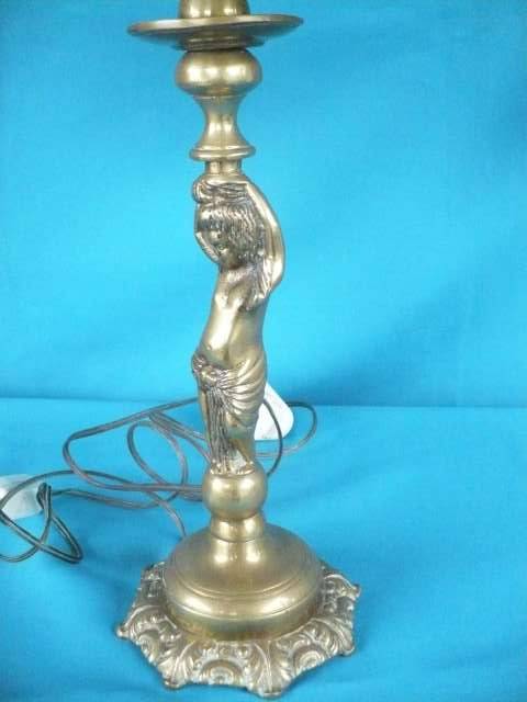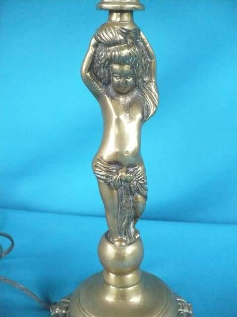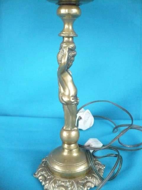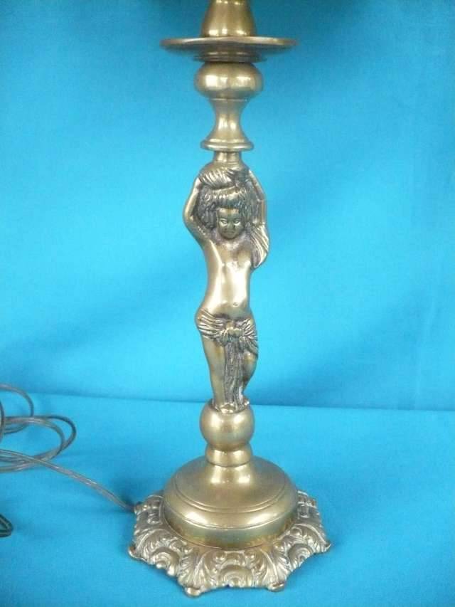BRASS TABLE LAMP FORMED WITH SEMI NUDE FEMALE   WITH SHADE