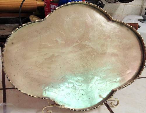 END OF1 BRASS TRAY EMBOSSED BASE PATTERN + TOP RIM SERRATED LOVELY SHAPE " -LISTING