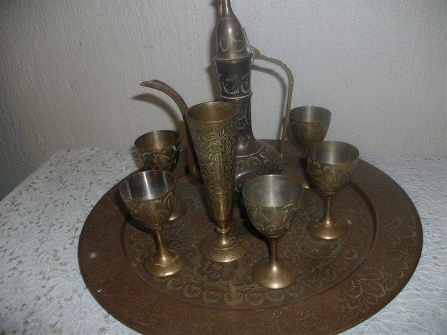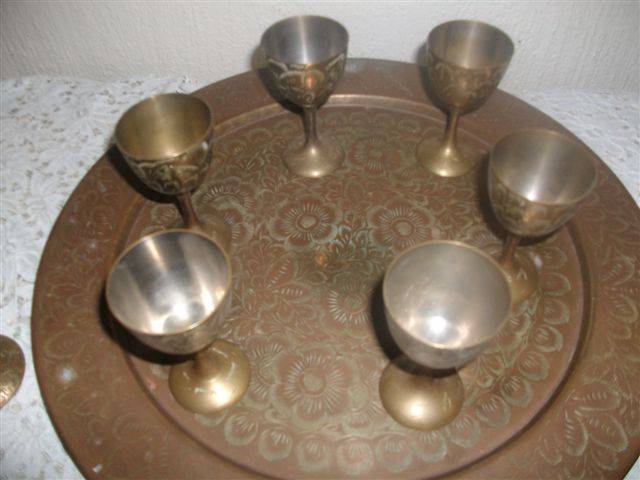 Lovely brass turkish style jug with goblets and tray and small brass vase items are in good used condition may just need a polish up