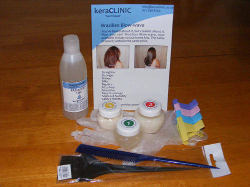Brazilian keratin treatment, anti residue shampoo, moisture masque, applicator brush, full instructions, tail comb, gloves, 1 x 200ml sulphate free shampoo, 4 x clips