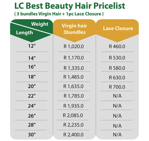 STOCK LENGTH: Virgin Hair 12"-26"; Closure 12"-20"