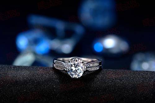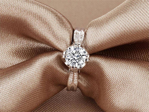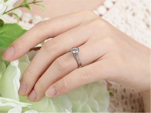 This ring is simply breathtaking. This ring features a sparkling middle stone and has round cut stones on the band.