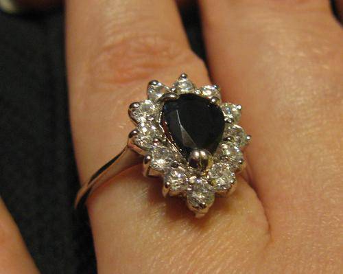 Breathtaking genuine blue teardrop sapphire & brilliant CZ ring in solid 10ct white gold