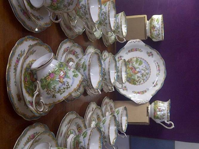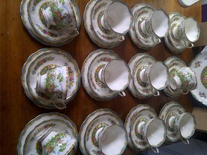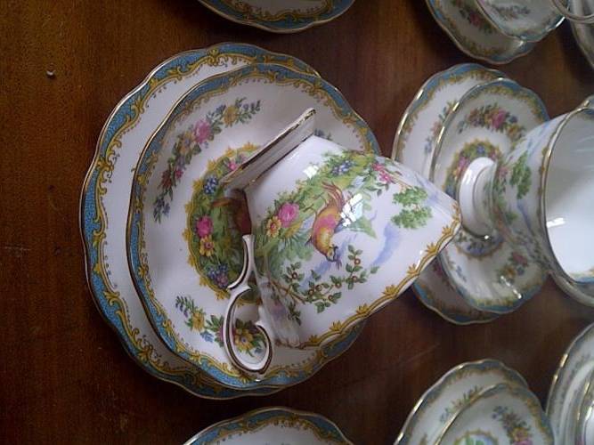 Simply gorgeous!! A breathtakingly beautiful, and colourful Royal Albert Chelsea Bird tea set, consisting of 39 pieces, including 12 trios, a cake plate, milk jug, and sugar bowl, all in fantastic condition. An absolute must for the Royal Albert fans!!