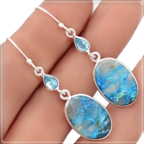 HANDMADE NATURAL LIGHTNING AZURITE IN QUARTZ AND BLUE TOPAZ