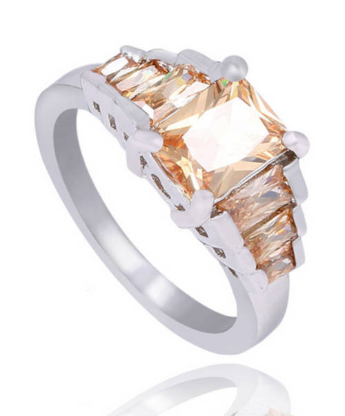 BREATHTAKING!!  WHITE GOLD PLATED WITH SIMULATED DIAMOND RING SIZE 7/17.3MM/O ERV R999