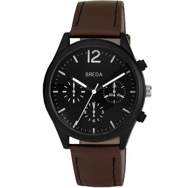 This Breda watch has a simple; classic look with a sleek black dial and decorative subdials. This watch is finished with a comfortable faux leather strap and a buckle clasp.