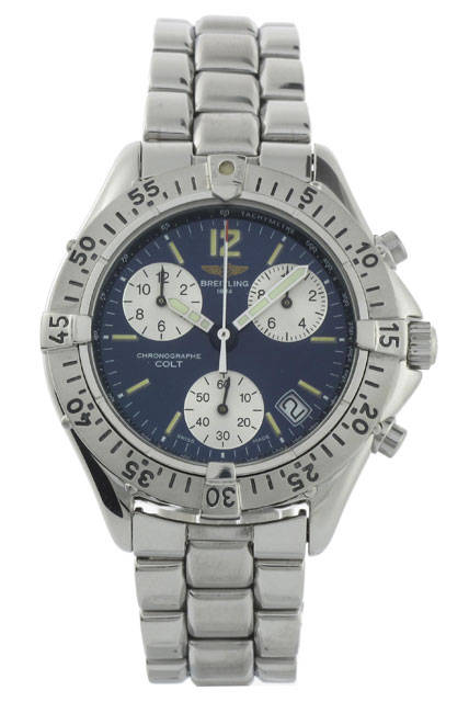 BREITLING COLT CHRONOGRAPH A53053 BLUE DIAL 100% AUTHENTIC GREAT CONDITION