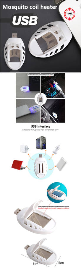 Main Features: USB compatible with the common mosquito coils, suitable for outdoor, car, charge treasure, home, mobile, travel No harm to your health. Effectively killing mosquito etc.