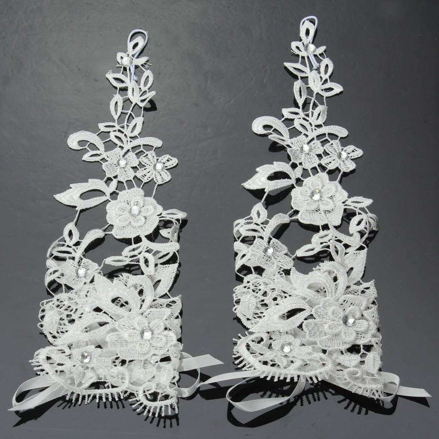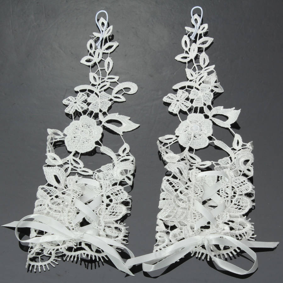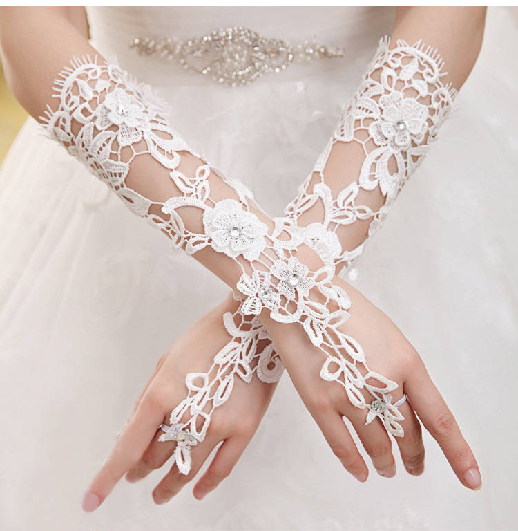Bridal Gloves Rhinestone Lace Flower White Bride Wedding Party Prom Dress Fingerless