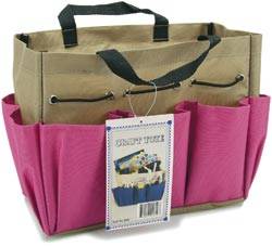 Everyone loves a bargain...and everyone can find the perfect use for this tote! Wide top opening, durable woven nylon fabric, nylon web handles and lots of pockets. There are three pockets on the front, two on the back and one on each end. Front, back and one end feature elastic cording through grommets which help support the items within the pockets.