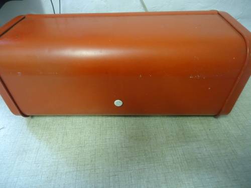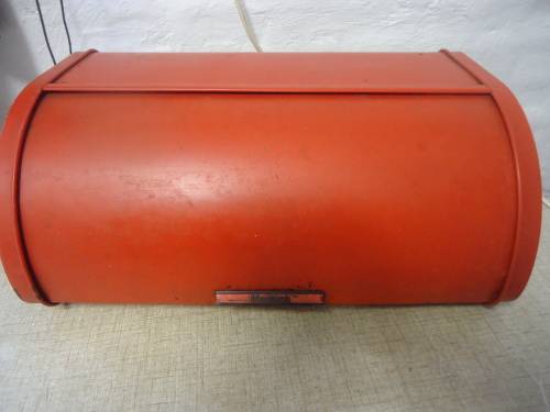 BRIGHT RED MONARCH ENAMEL BREAD BIN - 17 CM IN HEIGHT 25 CM WIDTH 43 CM WIDTH - PLEASE NOTE, COLOUR DIFFERENCES FROM CAMERA - THE BREAD BIN IS BRIGHT RED