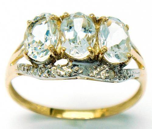 BRILLIANT 9CT SOLID YELLOW GOLD & 1.5CT AQUAMARINE & DIAMOND RING