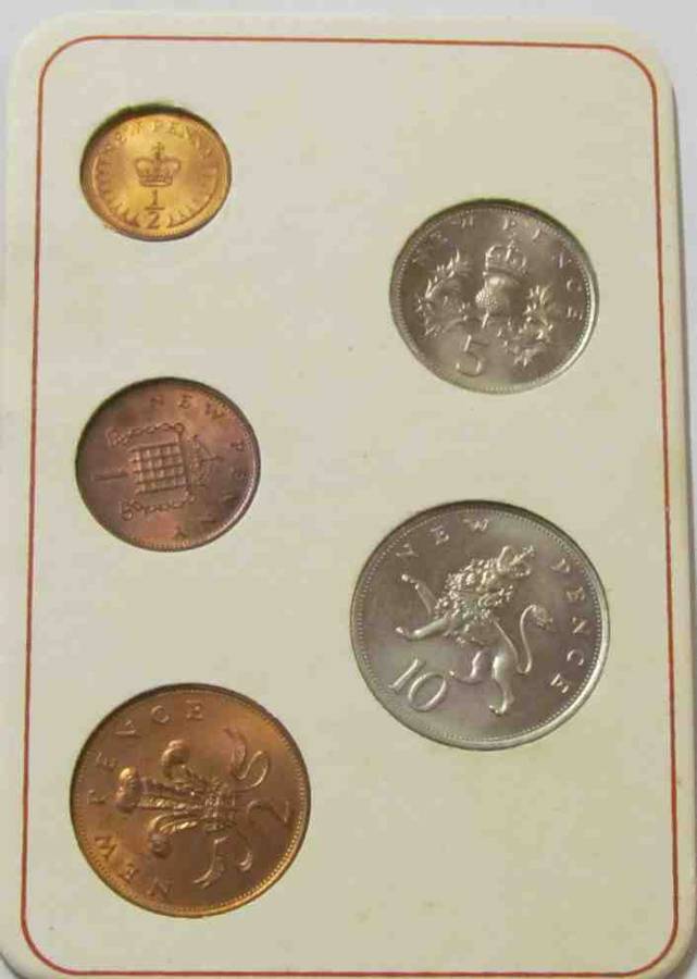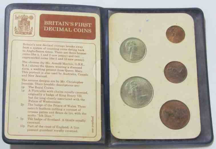 BRITAIN'S FIRST DECIMAL COINS=Decimal Day 15th February 1971=Royal Crown,Prince of Wales,Scotland!!!