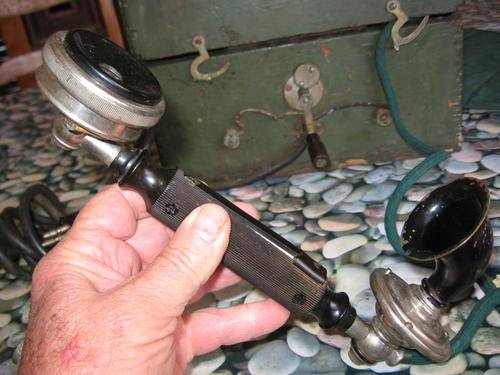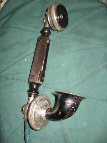 Needless to say the telephone does not work and the two dry batteries are missing. While the telephone appears otherwise complete and parts genuine, except for hinge screws, it is not known if any other parts are missing.