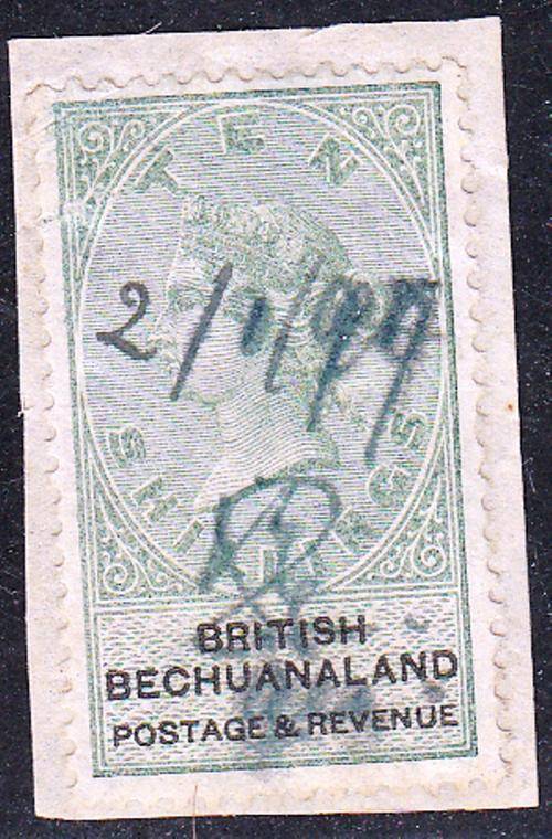 BRITISH BECHUANALAND 1887 QV TEN SHILLINGS ON PIECE (SACC 19)