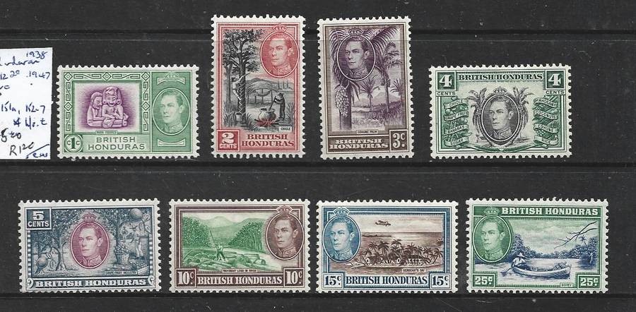 British Honduras, GVIR, 1938 -47, 1c - 25c MH * British Honduras, GVIR, 1938 -47, 1c - 25c MH *