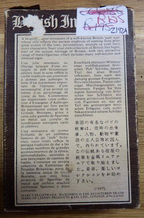 British Innsigns by Matchbox metal miniatures figurine in original box - box damaged -as per photo