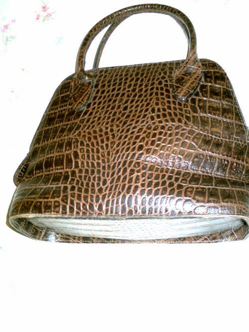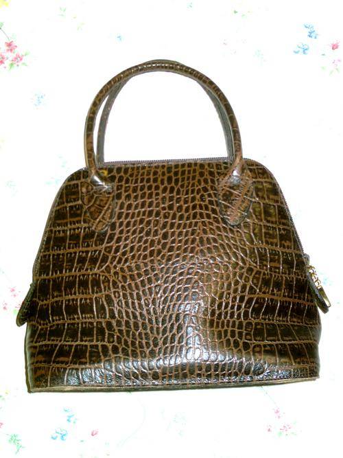 Vintage Croc leather Marks & Spencer bag. High quality bag with printed fabric lining. The bag is in excellent used condition. Sold as is. Enjoy.