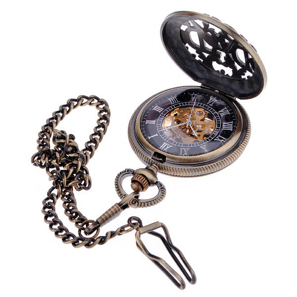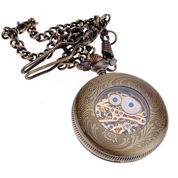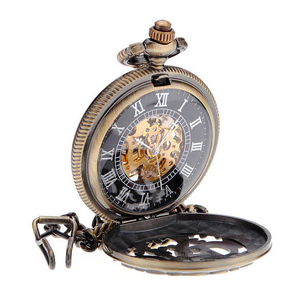 Bronze Antique DAD Hollow Mechanical Pocket Watch Chain