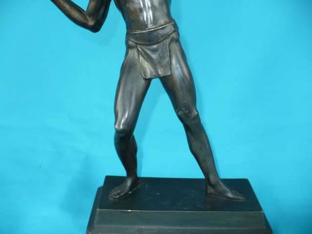 BRONZE FIGURE OF AN ATHLETE WEARING A LOIN CLOTH & THROWING A WEIGHT