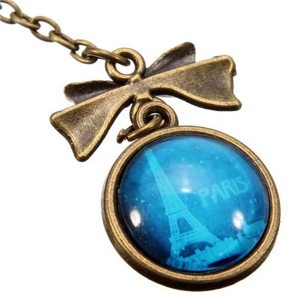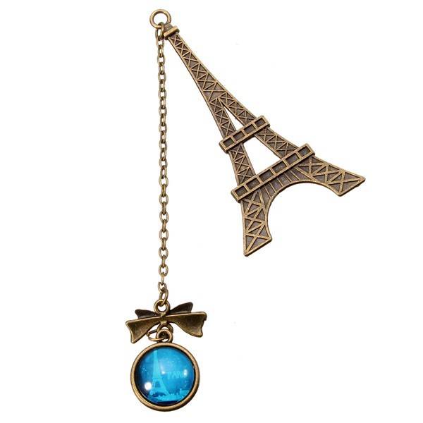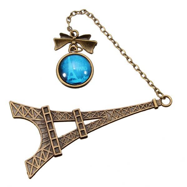Bronze Metal Eiffel Tower Shape Bookmarks with Vintage Blue Glass Pendant Bookm