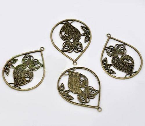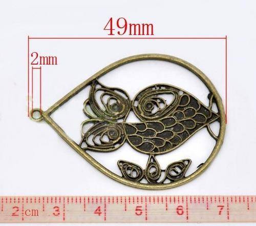 Bronze Teardrop Owl Charm/Pendant - 49 x 37mm