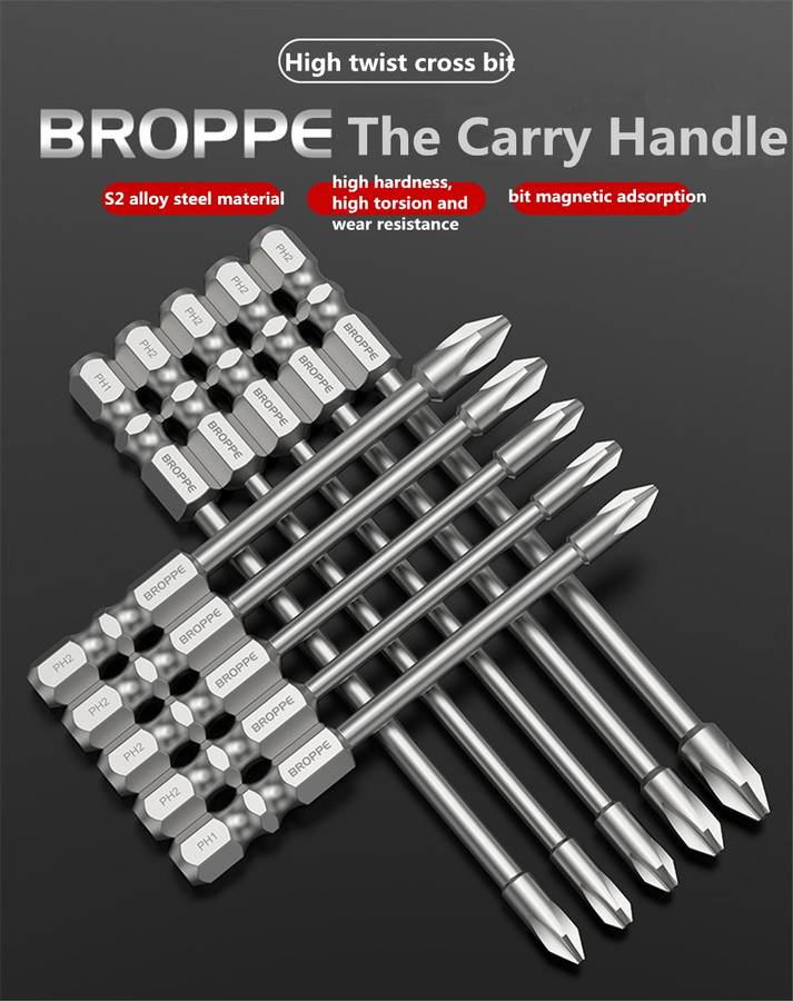 BROPPE 10Pcs 75mm Length Phillips Screwdriver Bit High Torque Cross Screwdriver Bit S2 Strong Magnetic Screwdriver Bit