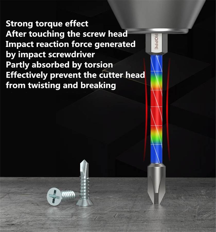 -The whole bit is magnetic and has a tight bite, which is convenient for sucking screws during operation and improves efficiency.
