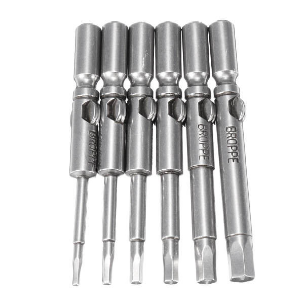 BROPPE 6Pcs 802 Hexagon Screwdriver Bits Set H1.5-H5 6mm Round Shank Electric Screwdriver Bits