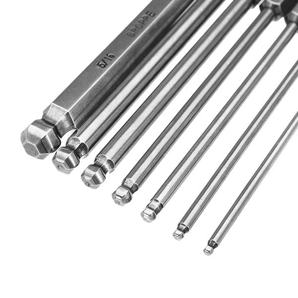Description: Broppe 7pcs SAE 5/64-5/16 Inch 100mm Magnetic Ball Screwdriver Bits 1/4 Inch Hex Shank