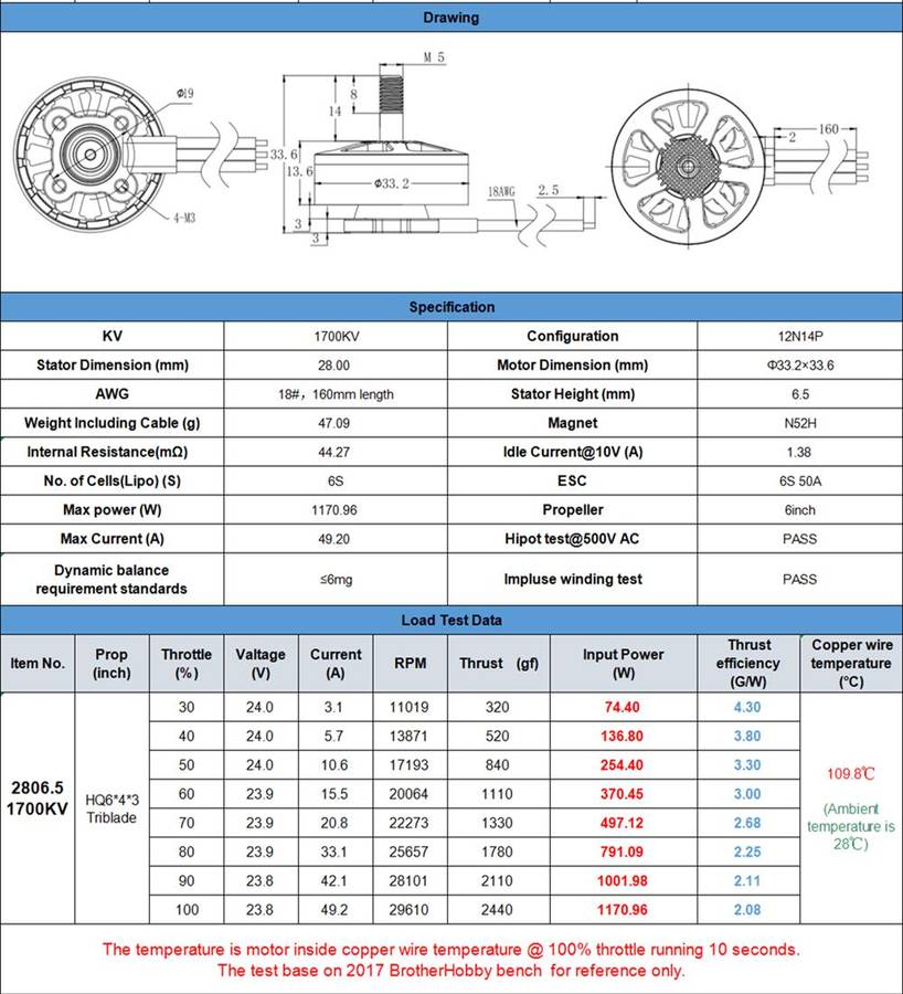 Resistance: 64.06m??@1300KV ; 44.27m??@1700KV Idle Current@10V:? 1.01A@1300KV;? 1.38A@1700KV