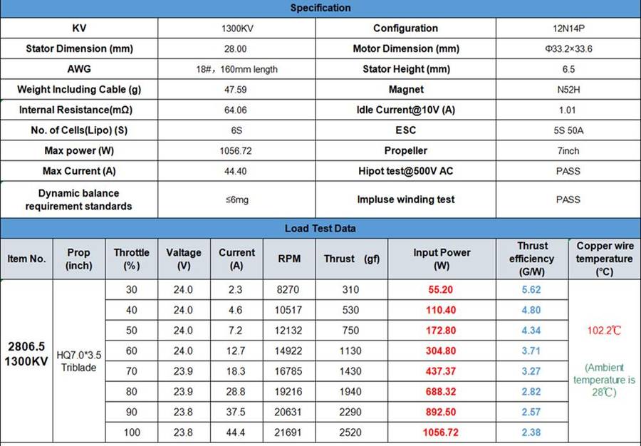 Max. Power: 1056.72W@1300KV ; 1170.96W@1700KV