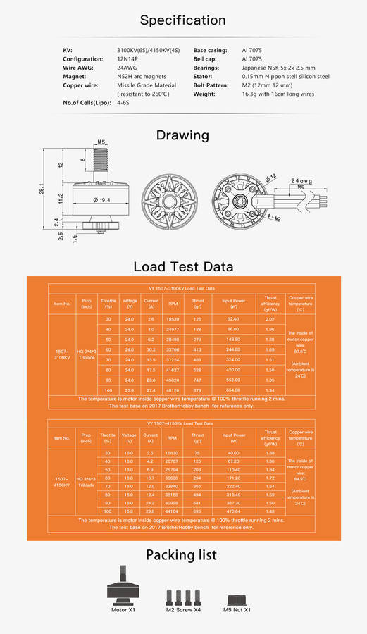 Item Name:??1507 1550KV 3100KV 6S / 1900KV 4150KV 4S Brushless Motor?