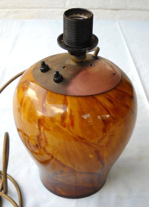 It has a light bulb socket mounted on top of the stem, in a Bakelite fitting and one in the base of the lamp, so that the base is lit from the inside when the light is on. This creates a lovely effect, accentuating the veination.