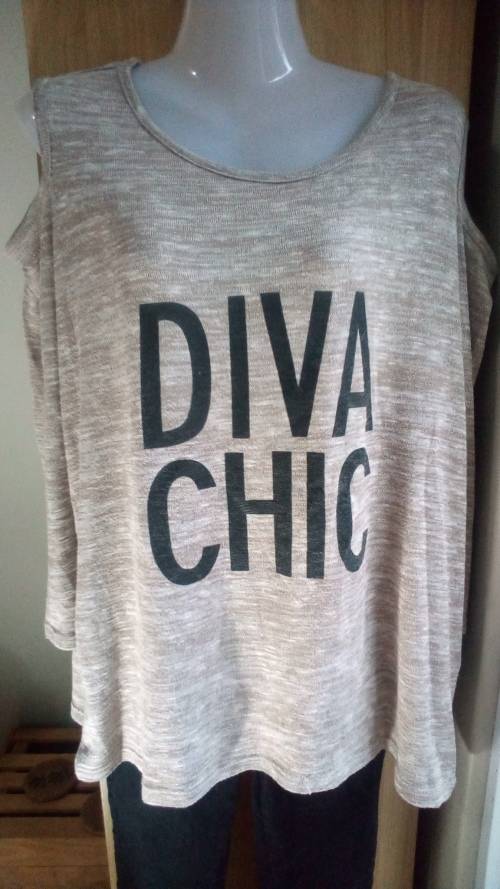 Brown Flecked Fine Knit Long Sleeve Shirt with shoulder cut out , curved bottom hem by Cruise in good condition