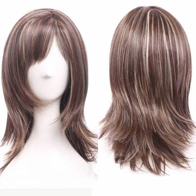 This Brown Mixed Golden Synthetic Wig is on a new trend. One size fits most heads with adjustable ventilated net cap with elastic straps.
